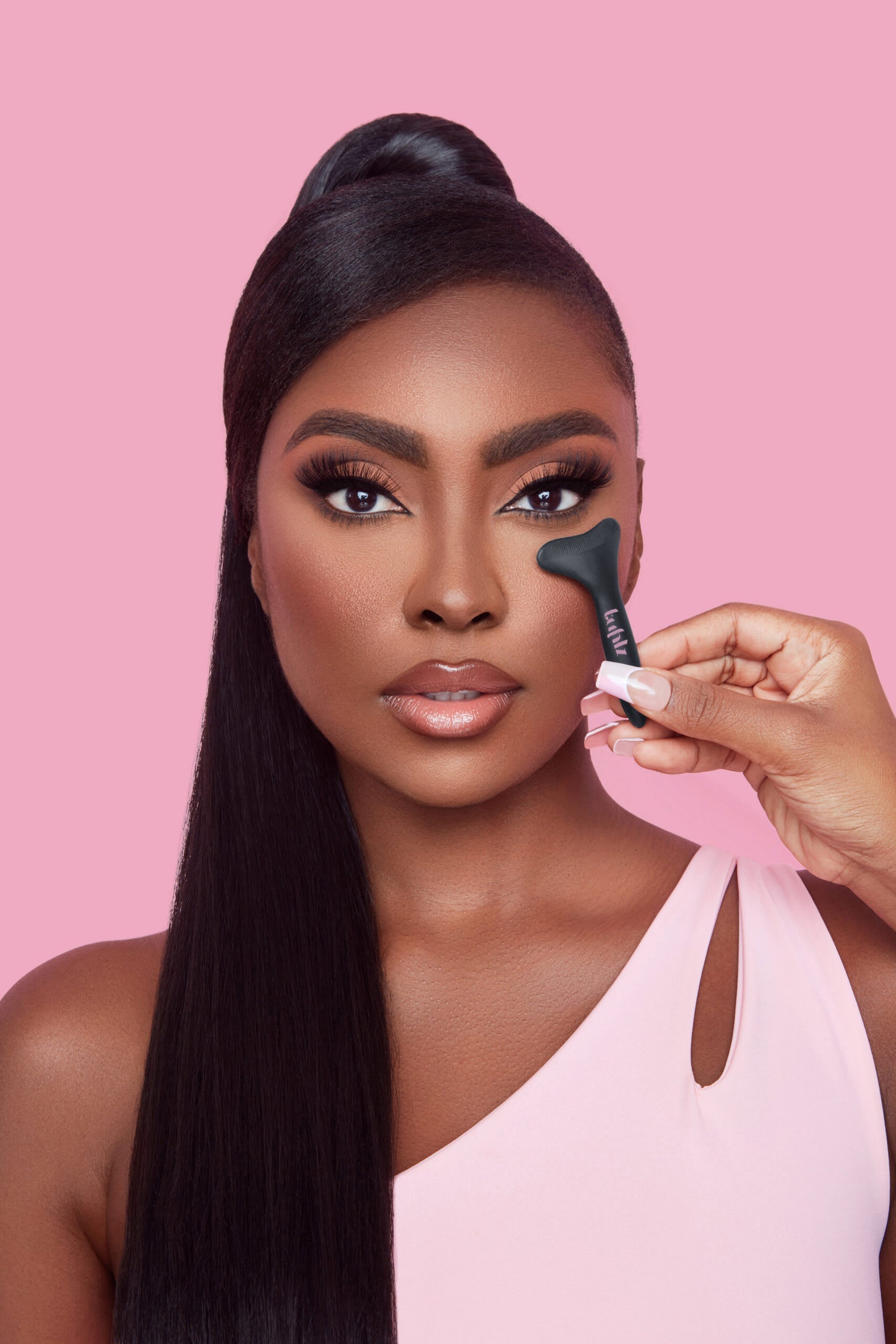 Ideal for mascara application. Acts as a shield to prevent mascara from smudging onto the upper + lower eyelids